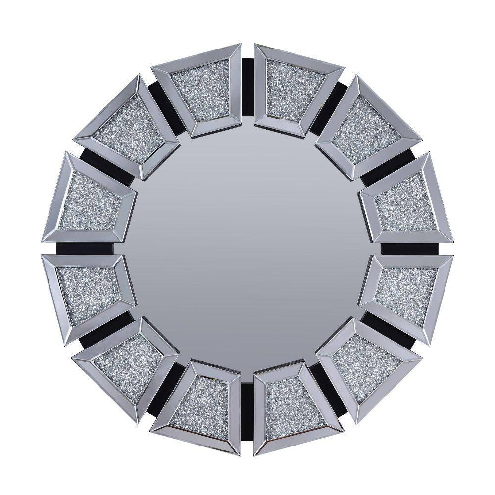 Benjara Clear and Black Wooden Backing Wall Decor with Tapered Mirrored Panel Borders