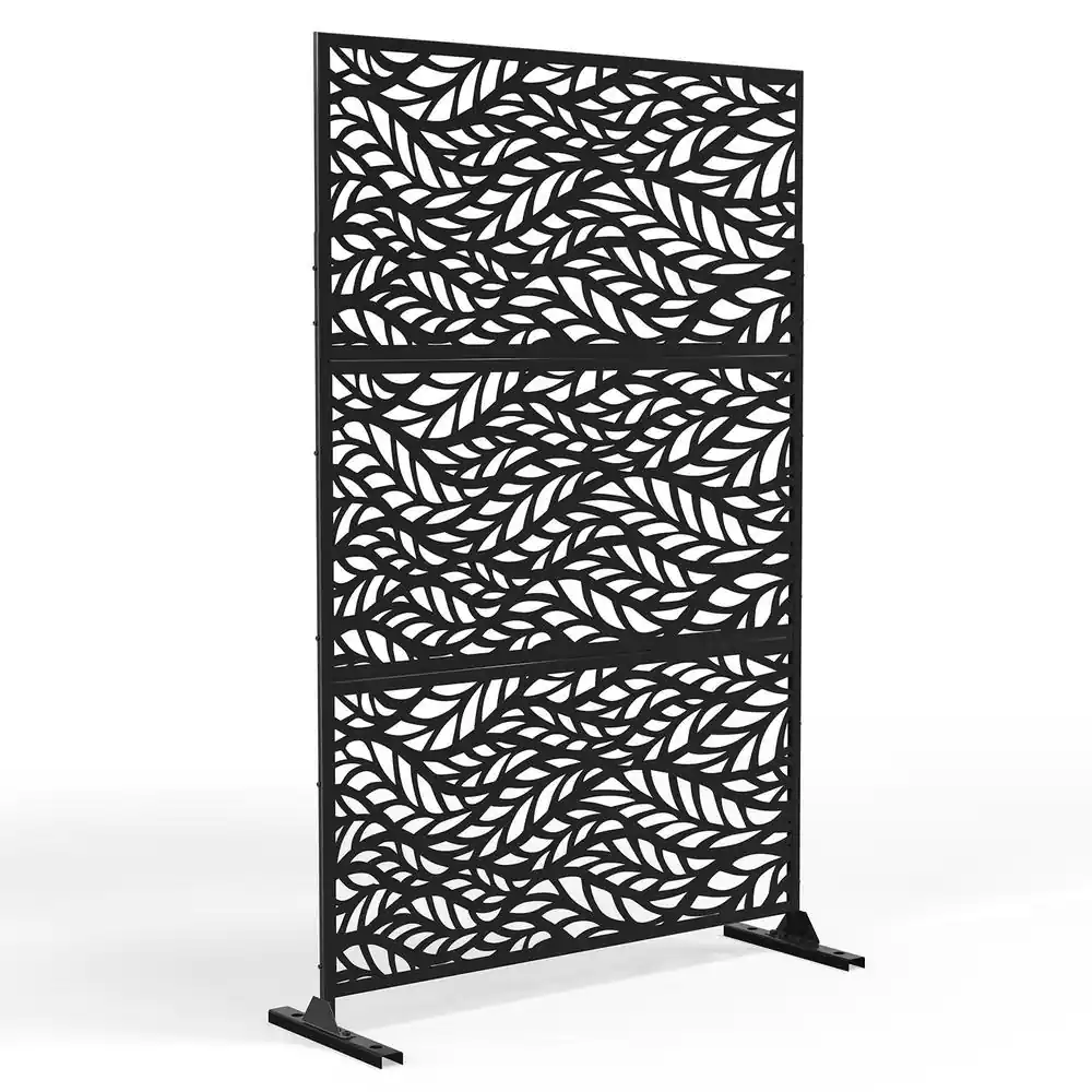None Laser Cut 76 in. x 47.2 in. Black Metal Outdoor Privacy Screen Flowleaf Pattern (3-Pieces in 1 Set)