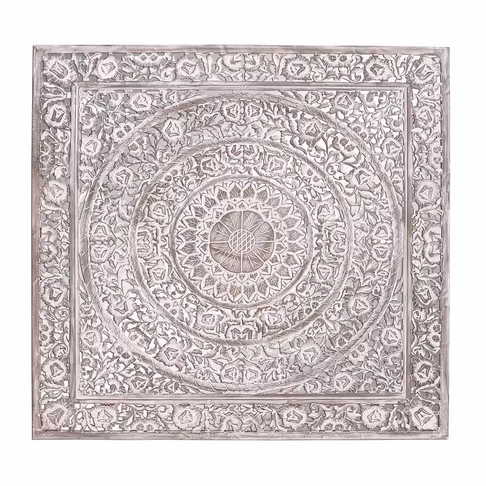 Litton Lane Wood White Handmade Intricately Carved Mandala Floral Wall Decor