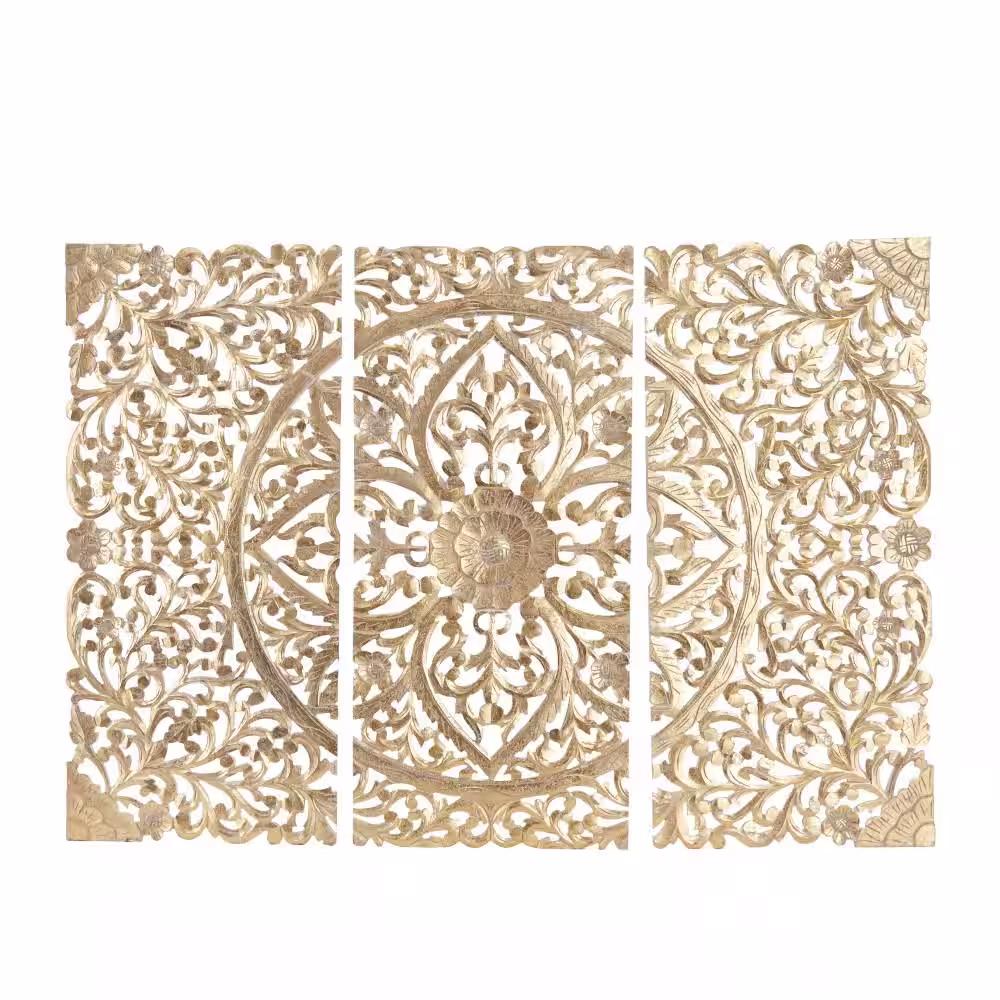 Litton Lane Wood Cream Handmade Intricately Carved Floral Wall Decor with Mandala Design (Set of 3)