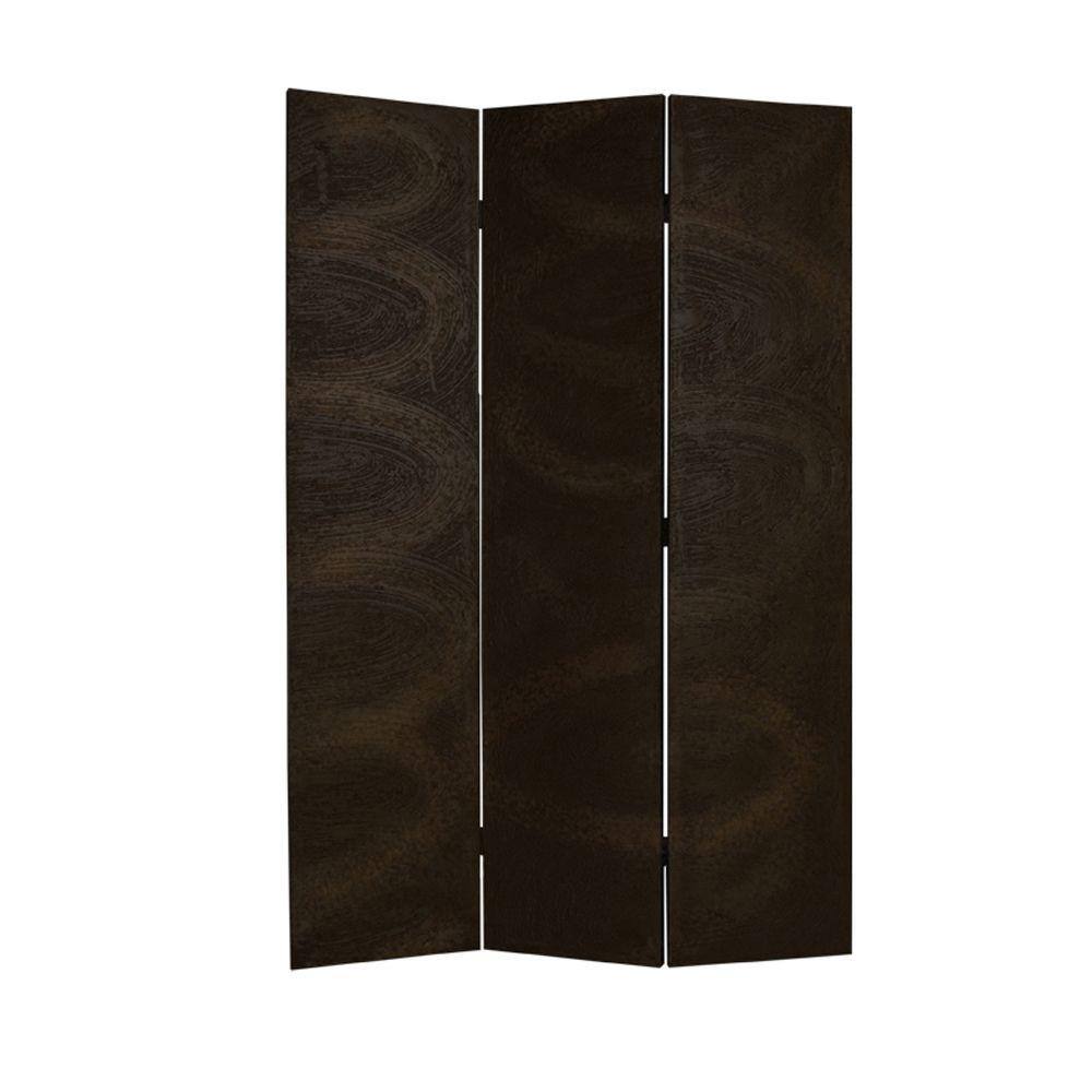 Benjara Dark Brown 3-Panel Foldable Canvas Room Divider with Swirl Details