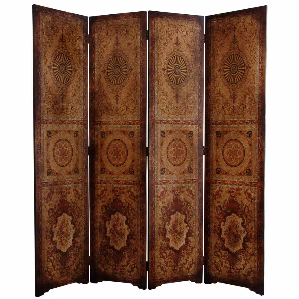 Oriental Furniture 6 ft. Brown 4-Panel Parlor Room Divider
