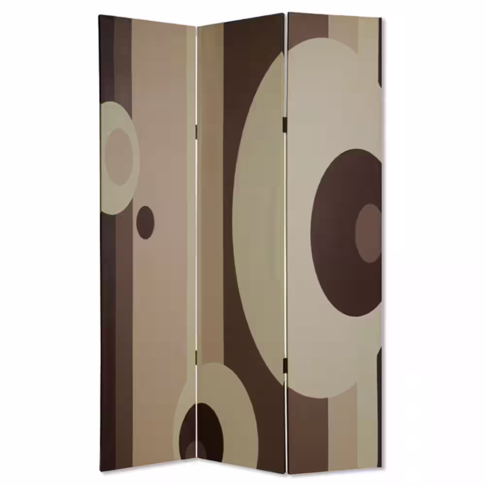 Benjara Beige and Brown 3-Panel Canvas Print Room Divider with Circle Design