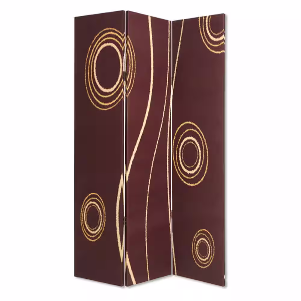 Benjara Brown and Yellow 3-Panel Foldable Canvas Room Divider with Circle Design