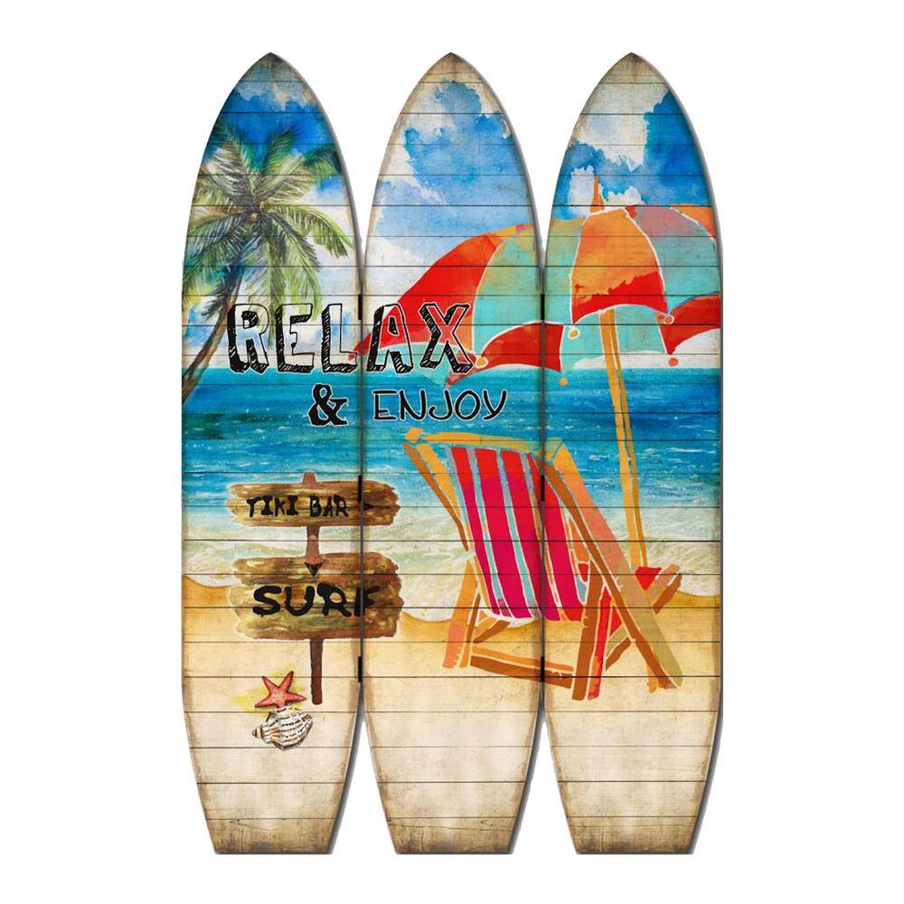 None SG-331 Classic Surfboard Screen 5.8 ft. Multi-color 3-Panel Room Divider