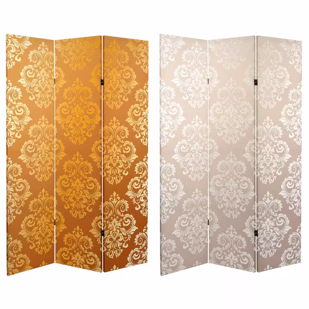 None Baroque Wallpaper 6 ft. Printed 3-Panel Room Divider
