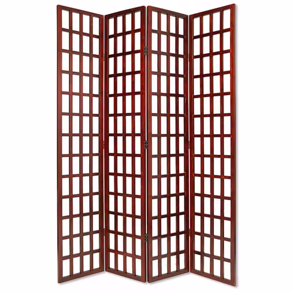 Benjara Brown 4 Panel Wooden Foldable Window Pane Screen with Grid Design