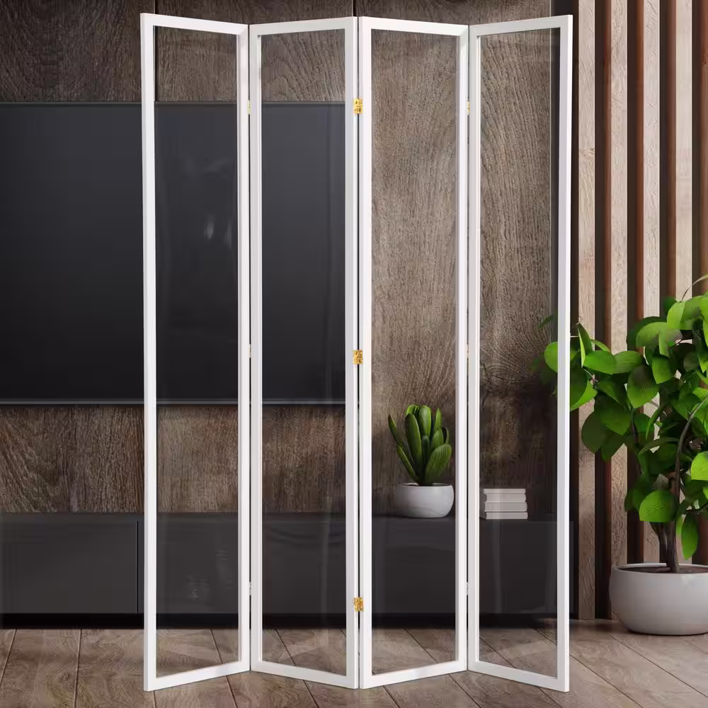 Oriental Furniture 7 ft. Tall Clear Plastic Partition White 4 Panel