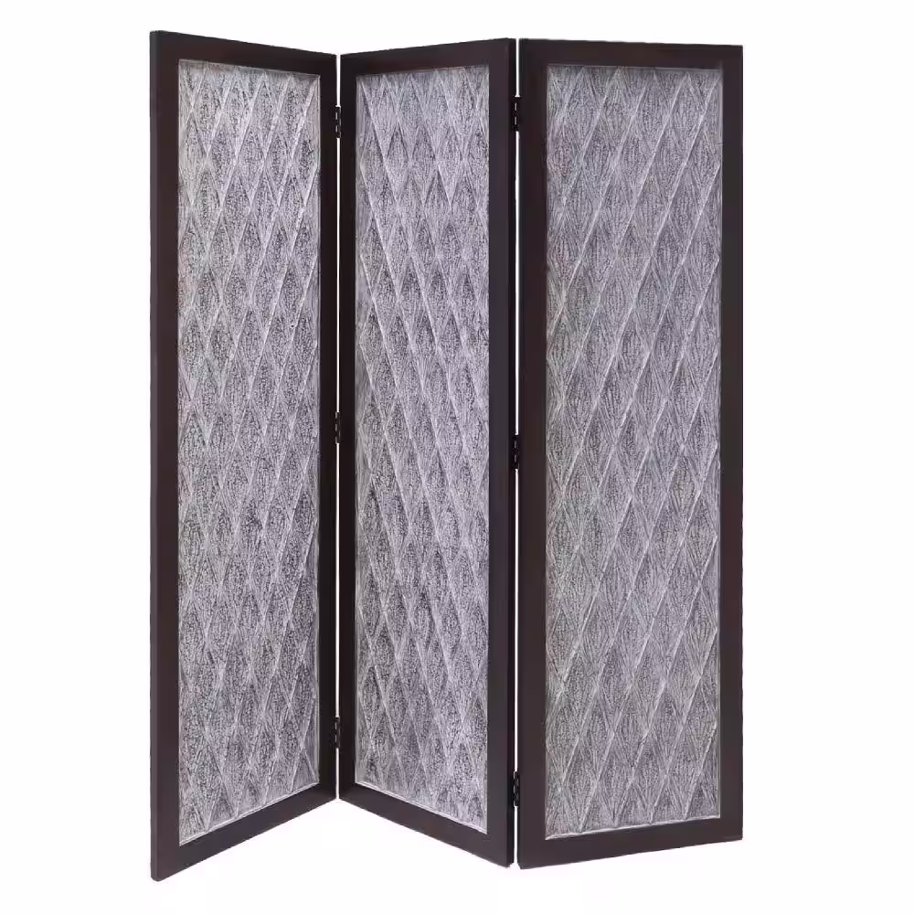 Benjara 70 in. H Gray and Black Wooden 3-Panel Room Divider with Textured Diamond Pattern