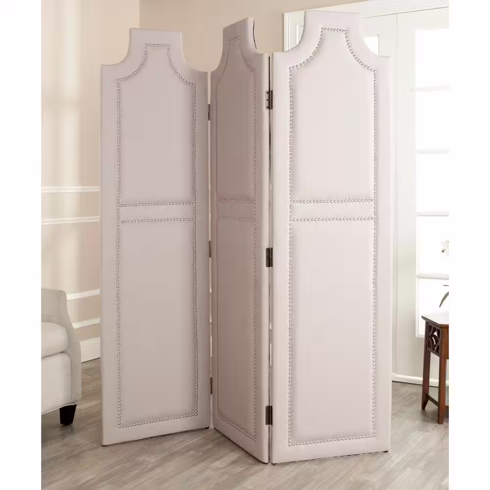 SAFAVIEH Darcy 70.9 in. Off-White/Silver 3-Panel Upholstered Room Divider