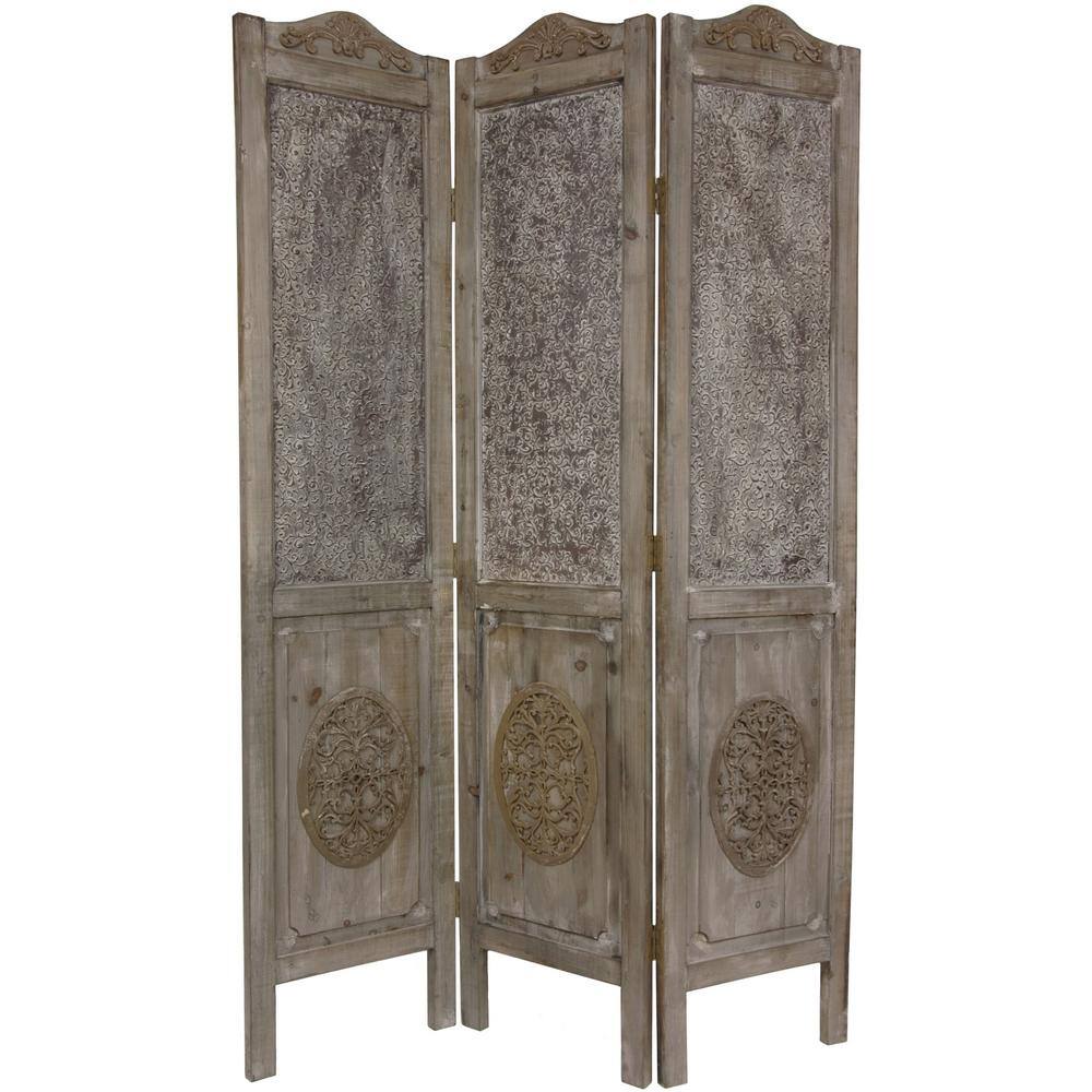 Oriental Furniture 6 ft. Gray 3-Panel Closed Mesh Room Divider
