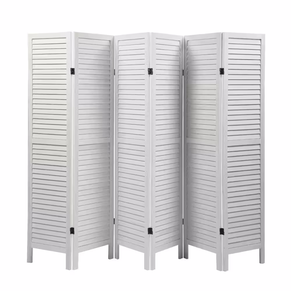 None Sycamore Wood 6 Panel Screen Folding Louvered Room Divider, Freestanding Privacy Screen Room Dividers, Old White