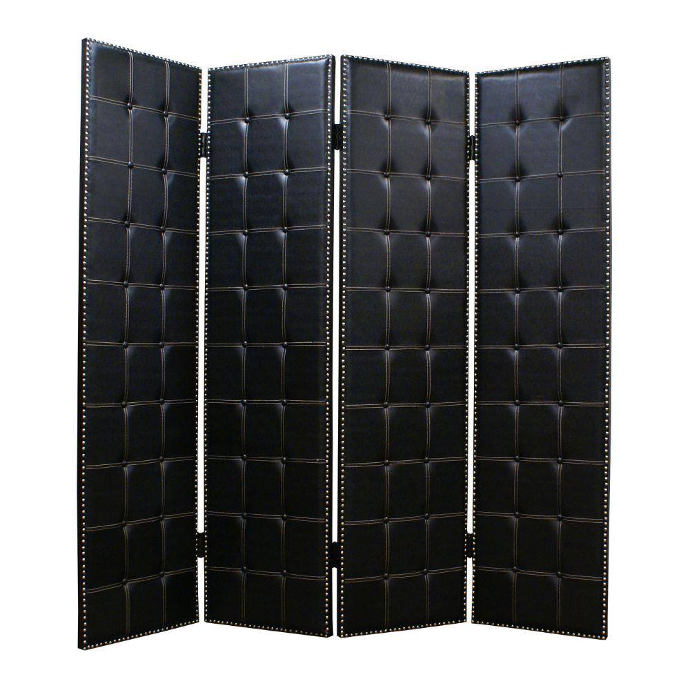 Benjara Black 4 Panel Wooden Screen with Button Tufting and Nailhead Trims