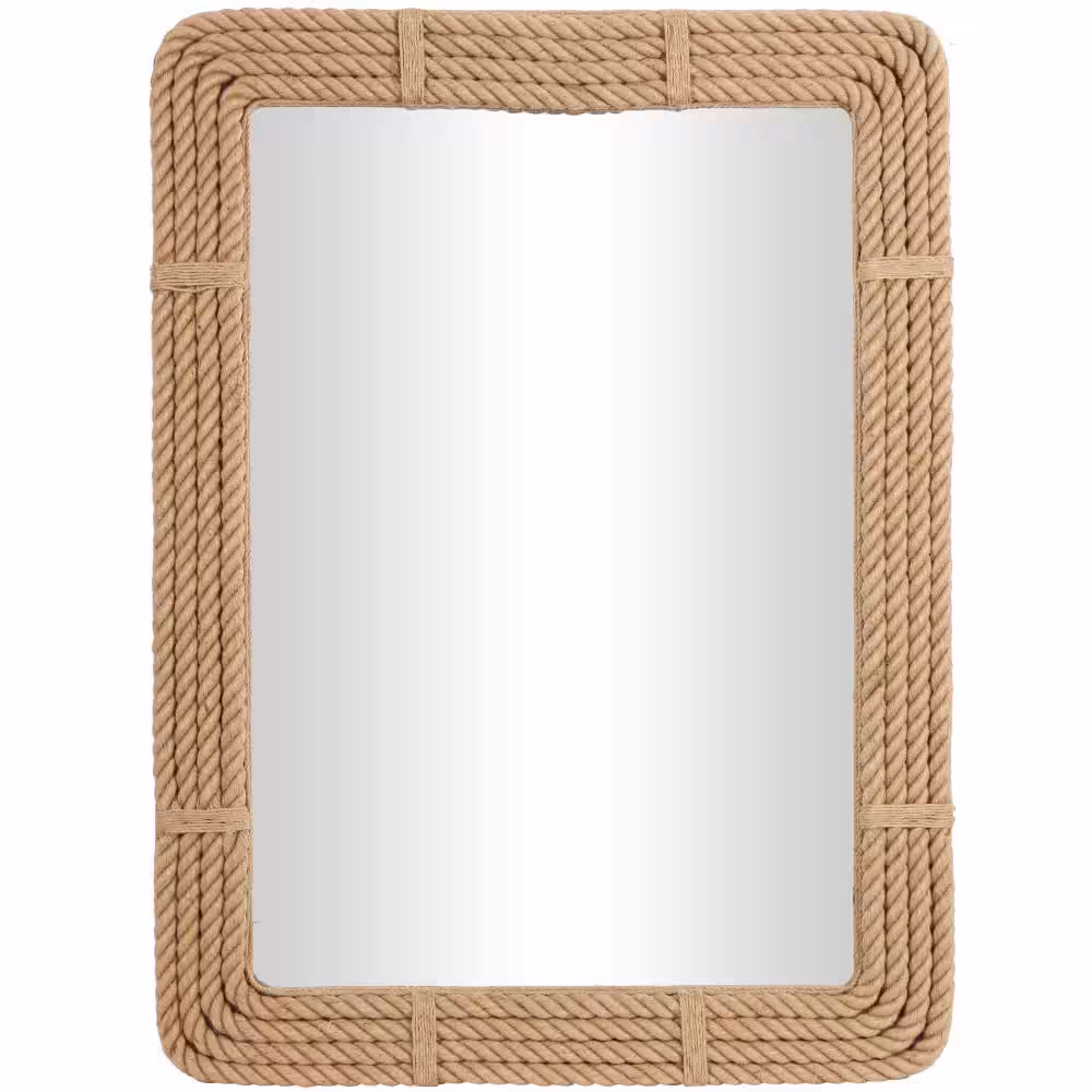 Litton Lane 48 in. x 36 in. Rope Rectangle Framed Brown Wall Mirror