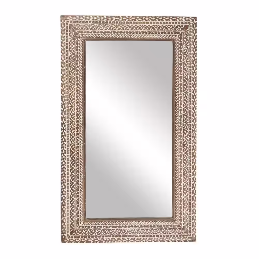 Litton Lane 59 in. x 36 in. Intricately Carved Rectangle Framed Brown Floral Wall Mirror