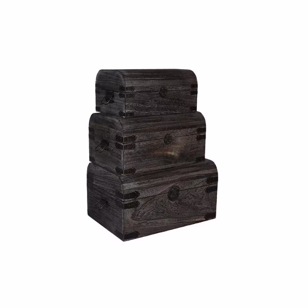 Benjara 12 cu. ft. Gray Wooden Lift Top Storage Box with Grain Details (Set of 3)