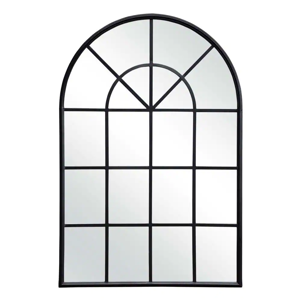 None 28 in. H x 41.5 in. W Classic Arched Windowpane Metal Framed Black Decorative Mirror