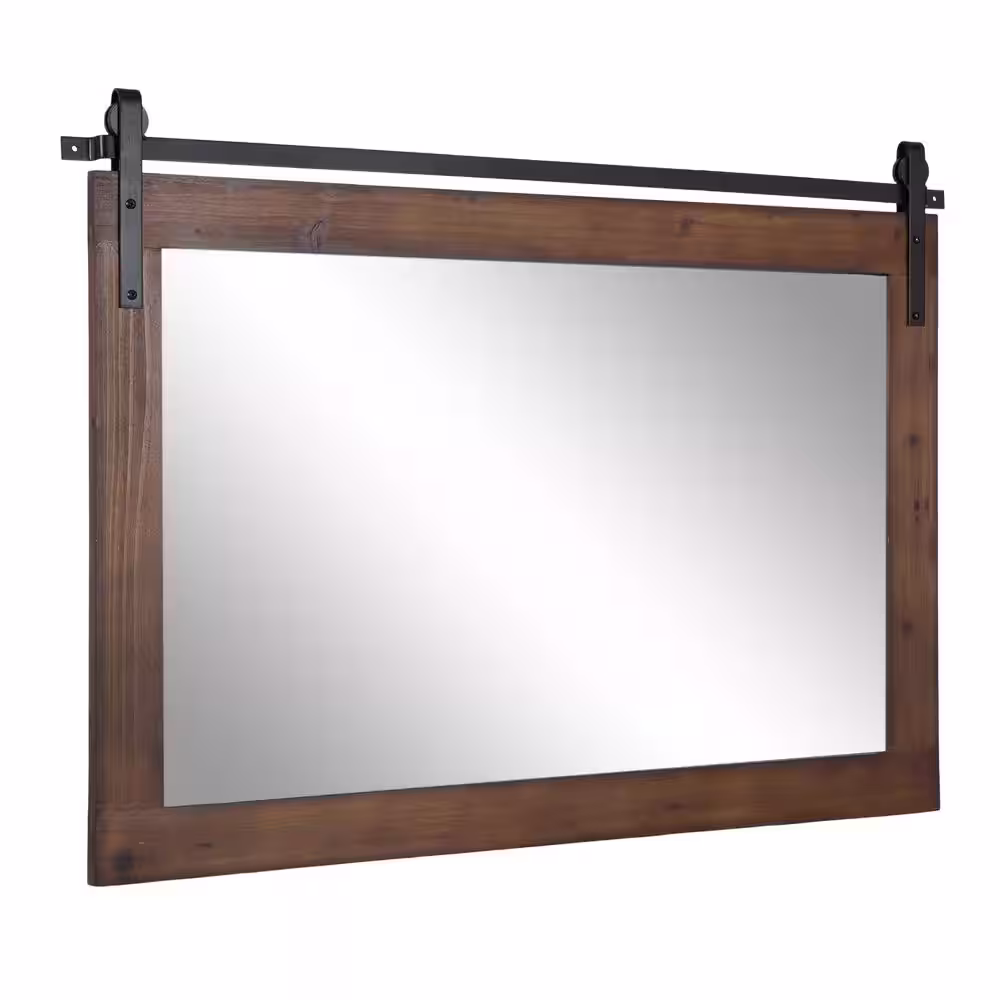 Kate and Laurel Cates 37.75 in. W x 26.75 in. H Walnut Brown Rectangle Farmhouse Framed Decorative Wall Mirror