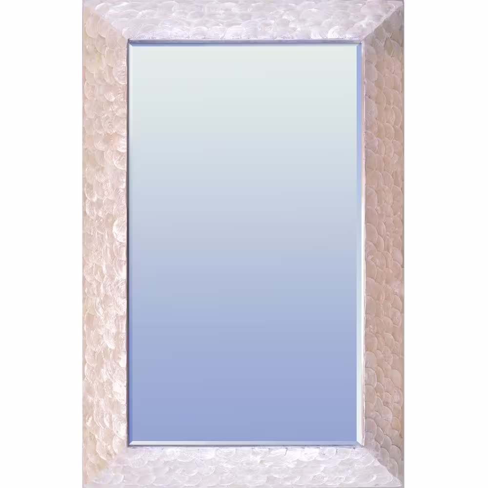 LA PASTICHE Seaside 36 in. W x 24 in. H Rectangle Ceramic Mother of Pearl Beige Framed Modern Decorative Mirror