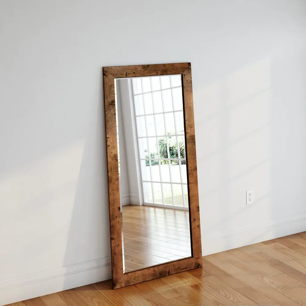 None Oversized Light Walnut Wood Cottage Farmhouse Rustic Mirror (65.5 in. H X 32 in. W)