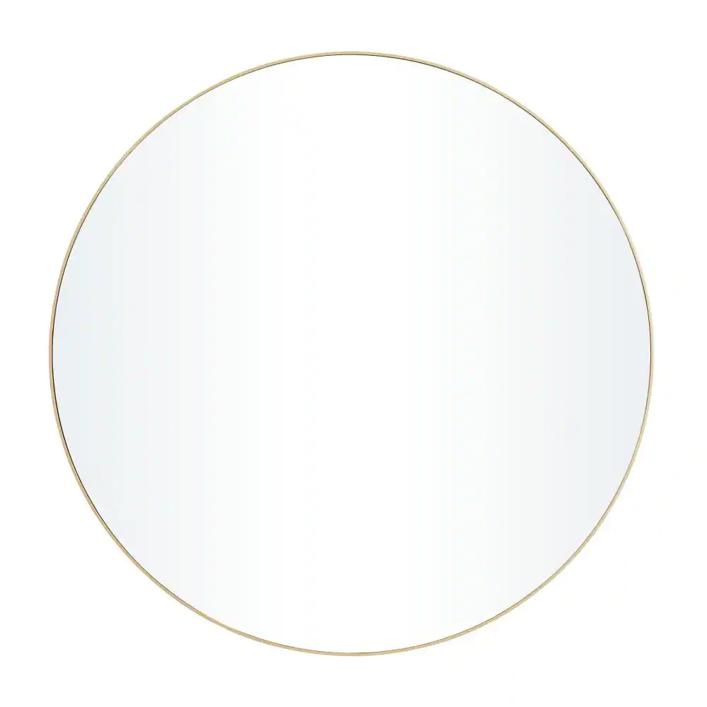 None 42 in. x 42 in. Round Framed Gold Wall Mirror with Thin Frame