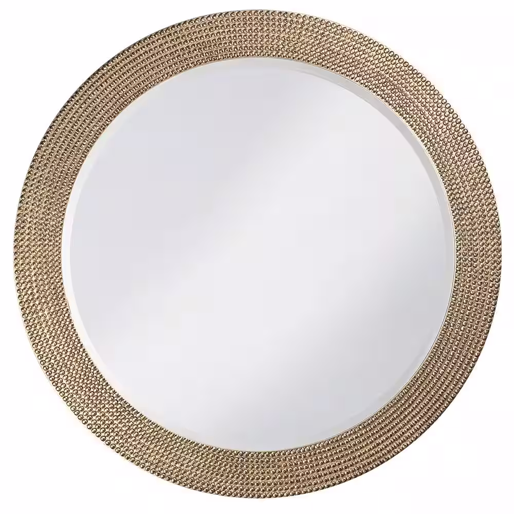 Marley Forrest Large Round Champagne Silver Leaf Beveled Glass Art Deco Mirror (42 in. H x 42 in. W)