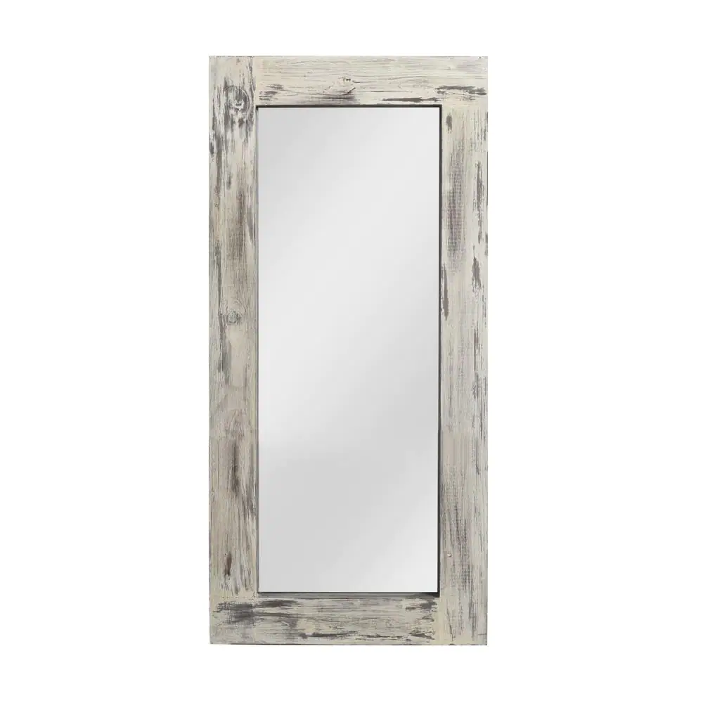 None 71 in. x 32 in. Rustic Rectangle Framed White Floor Leaning Mirror 1-Piece