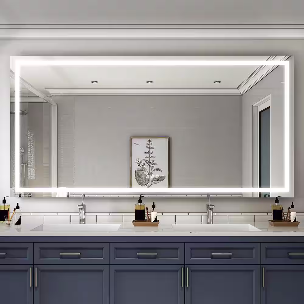 None 84 in. W x 42 in. H Rectangular Frameless LED Light Wall Vertical/Horizontal Bathroom Vanity Mirror in Aluminum