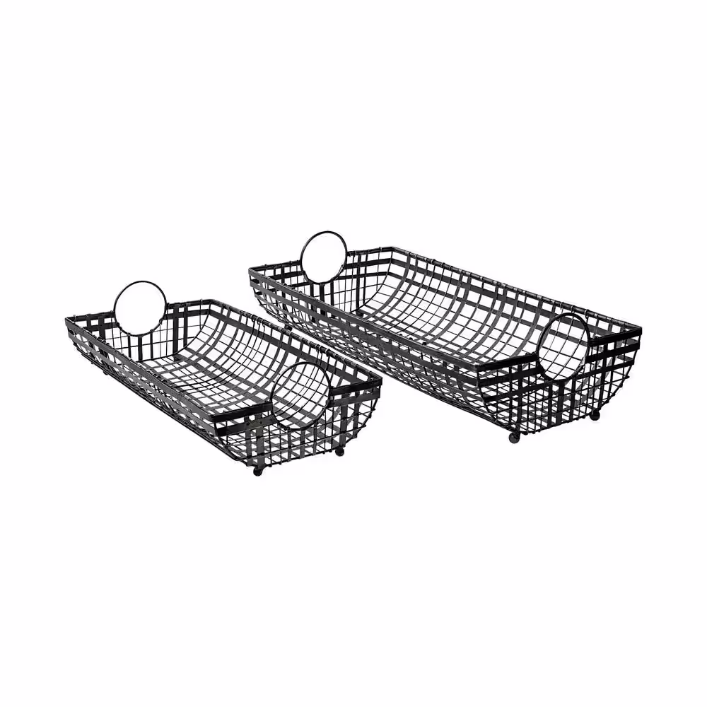 Mercana 24 in. L x 12 in. W Kenneth Gray Metal Baskets (Set of 2)