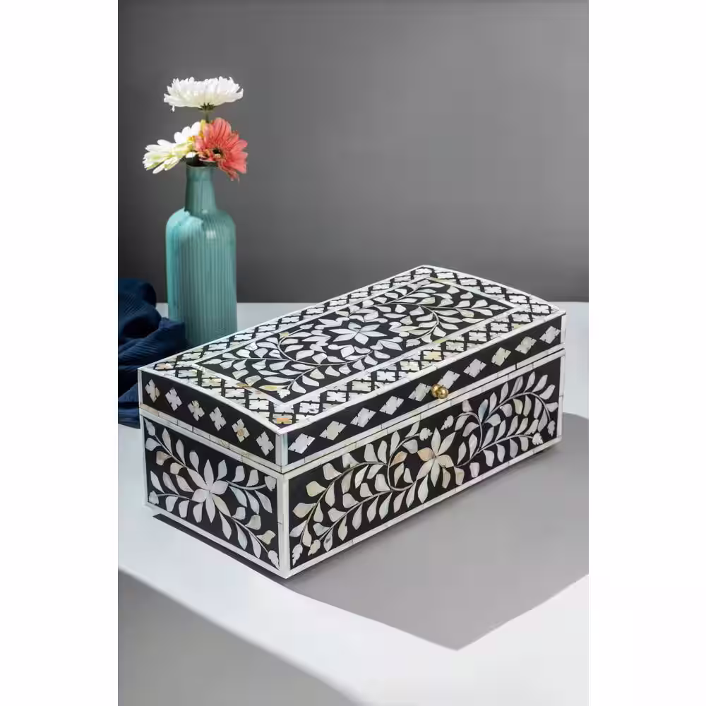 GAURI KOHLI Jodhpur Mother of Pearl Decorative Box - Black 16 in.