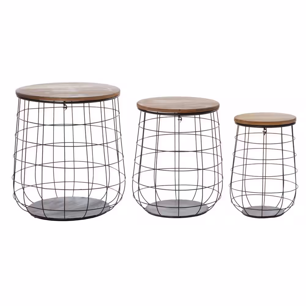 Litton Lane Metal Storage Basket with Wood Lids (Set of 3)