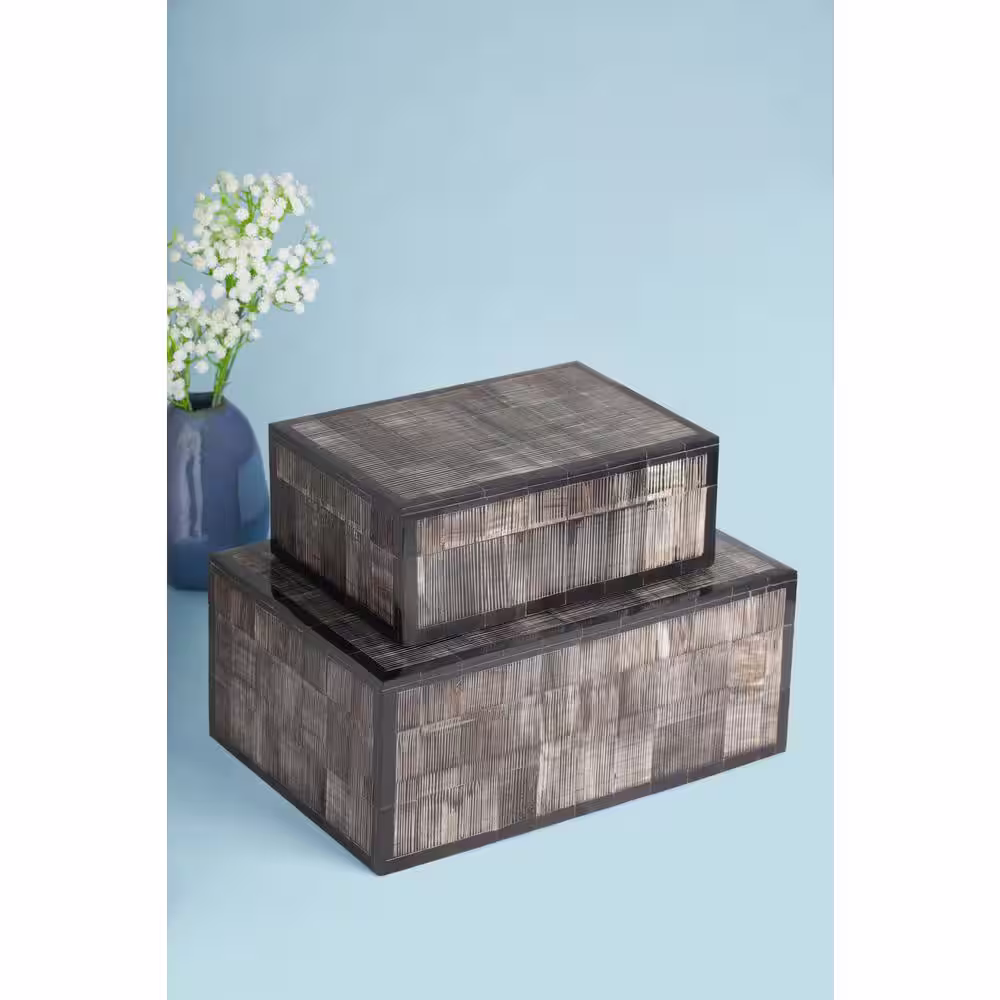 GAURI KOHLI Brown Bermuda Horn Decorative Boxes (Set of 2)