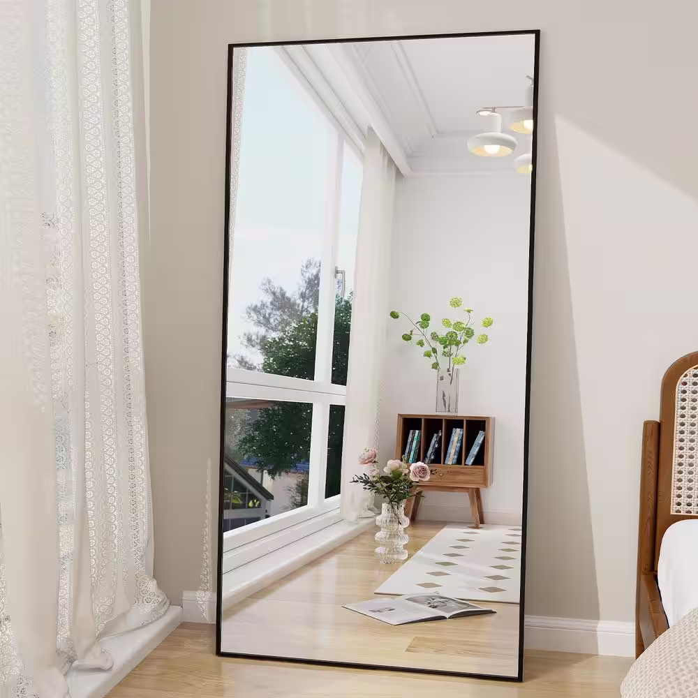 XRAMFY 30 in. W x 70 in. H Rectangular Classic Black Aluminum Alloy Framed Full Length Mirror