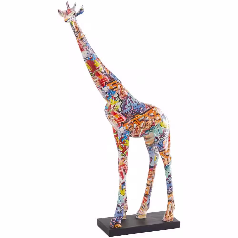 Novogratz Multi Colored Resin Graffiti Giraffe Sculpture with Black Base