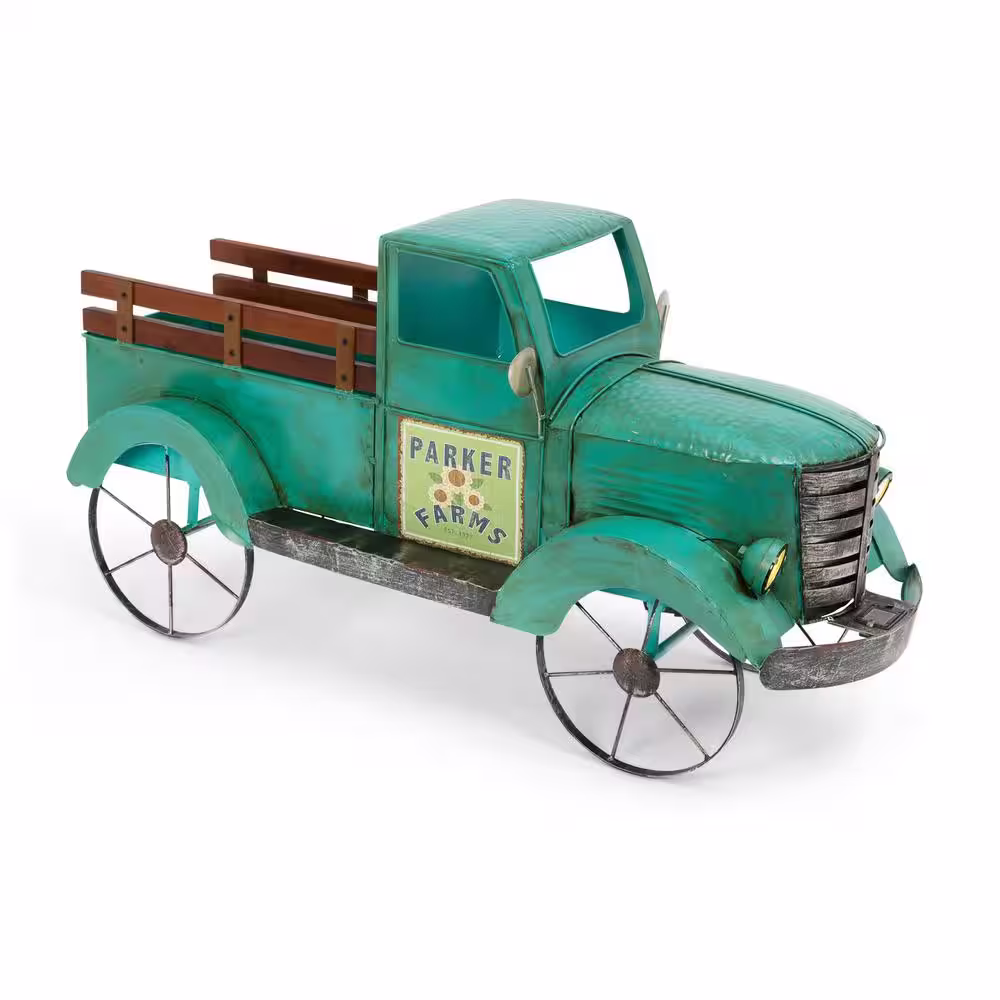 None 41"L Solar Lighted Blue Metal Garden Truck