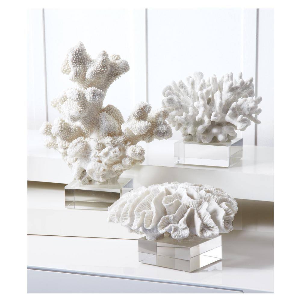Two's Company Reef White Coral Sculptures on Glass Stand (Set of 3)