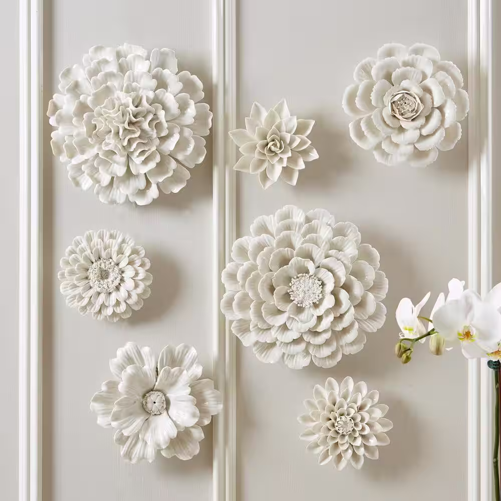 Two's Company White Porcelain Garden Flower Wall Sculptures (Set of 7)