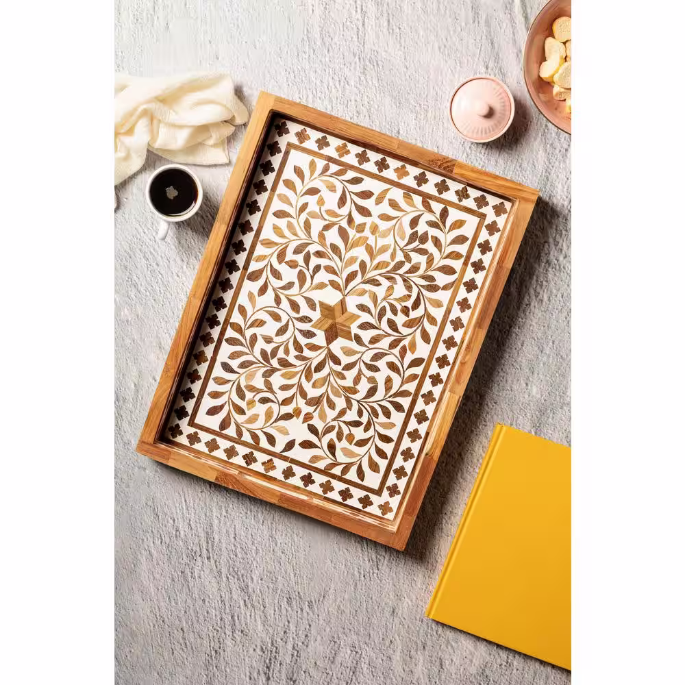 GAURI KOHLI Jodhpur Polished Wood Inlay Decorative Tray 20 in. x 15 in.