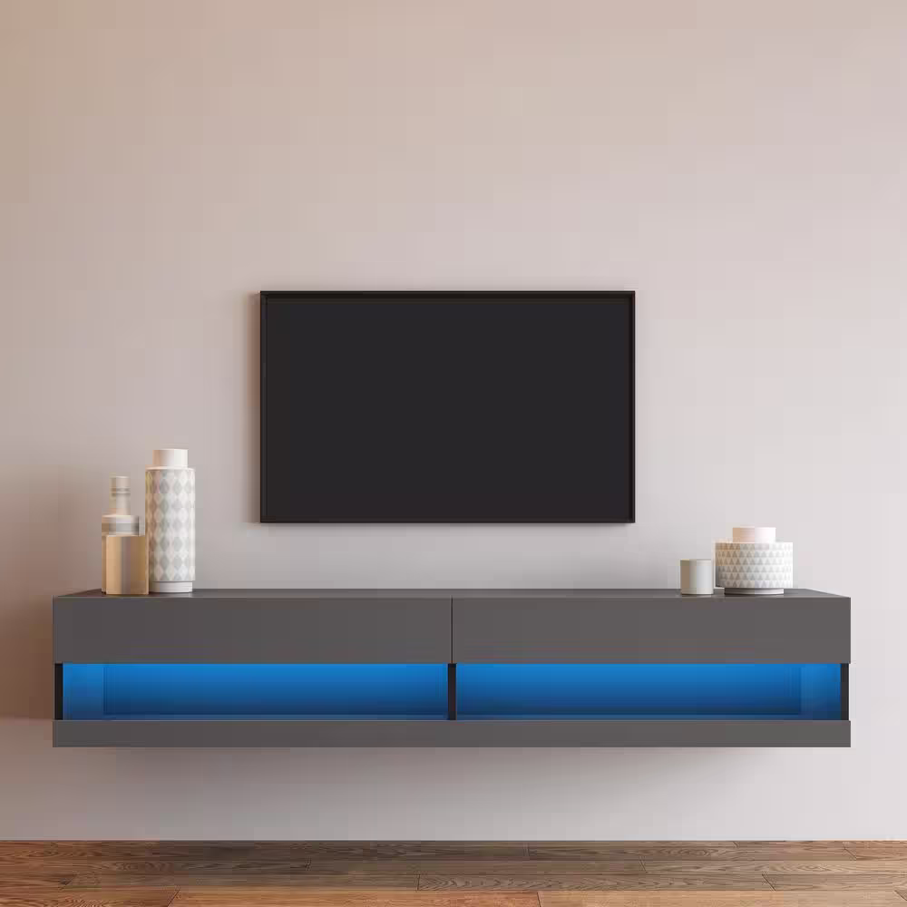 None 70.66 in. x 16.33 in. Black Wall Mounted Floating 80 in. TV Stand with 20-Color LEDs