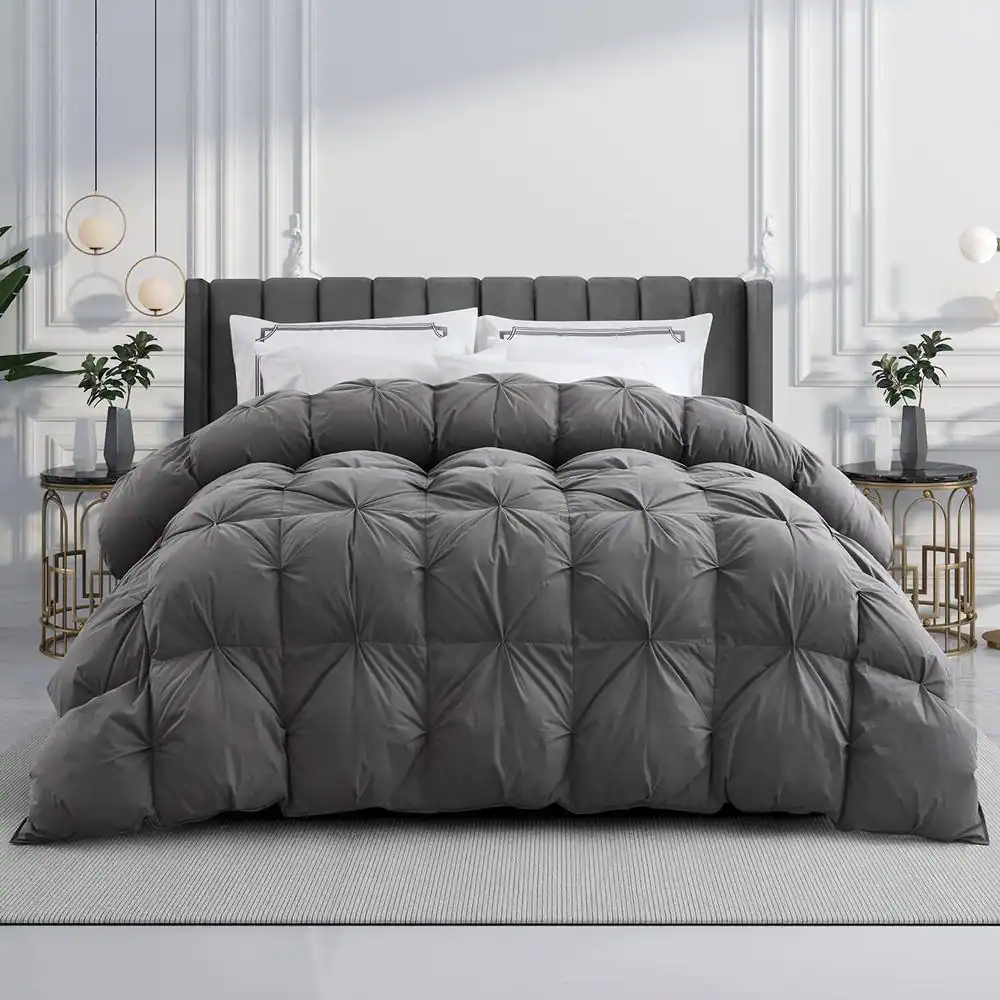 None Feather Down Comforter King, Beautiful Pinch Pleat Duvet Insert, 100% Cotton Fabric, All Season 106 x 90 in.