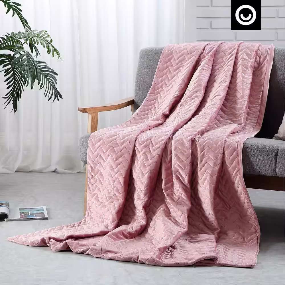 COZY TYME Fabumi Blush Polyester Queen Fur 60 in. x 80 in. 20 Pound Weighted Blanket