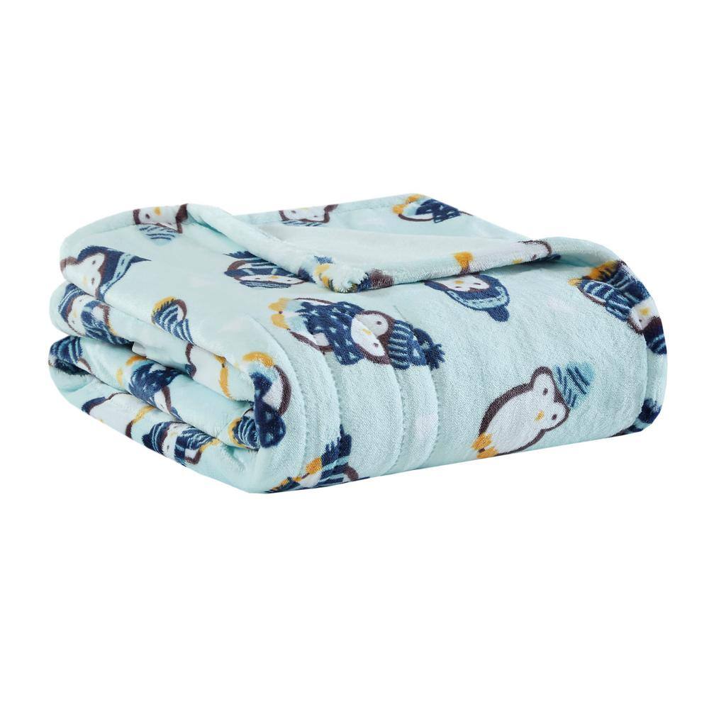 Beautyrest Overd Plush Aqua Penguins 60 in. x 70 in. Printed Heated Throw