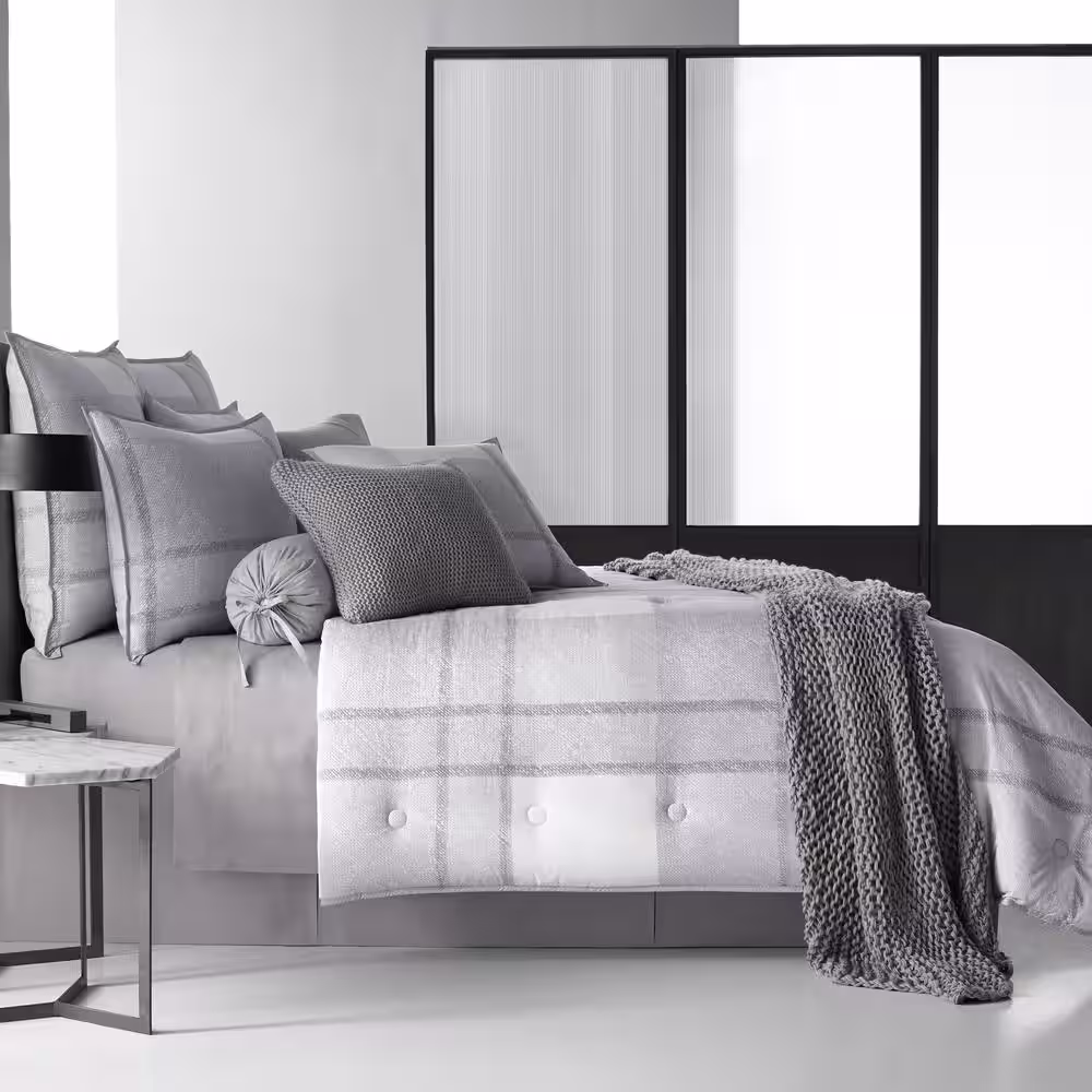 JML 8-Piece Black Microfiber Pintuck Queen Comforter Set