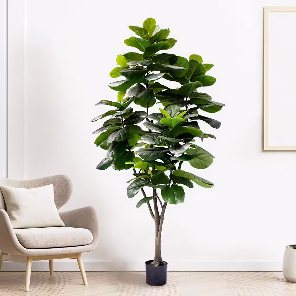 None 7.5 ft. Large Real Touch Artificial Fiddle Leaf Fig Tree in Pot