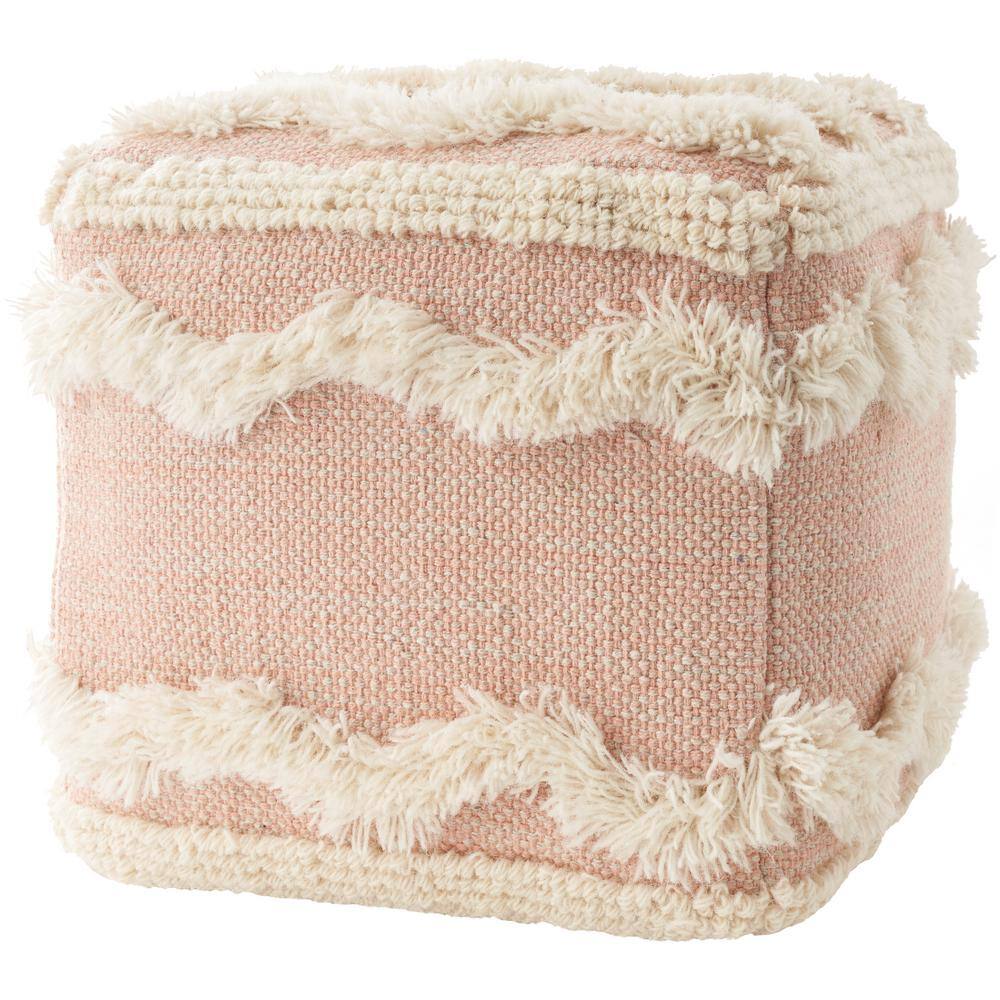 Mina Victory Life Styles Blush Woven Fringe 16 in. x 16 in. x 16 in. Ottoman