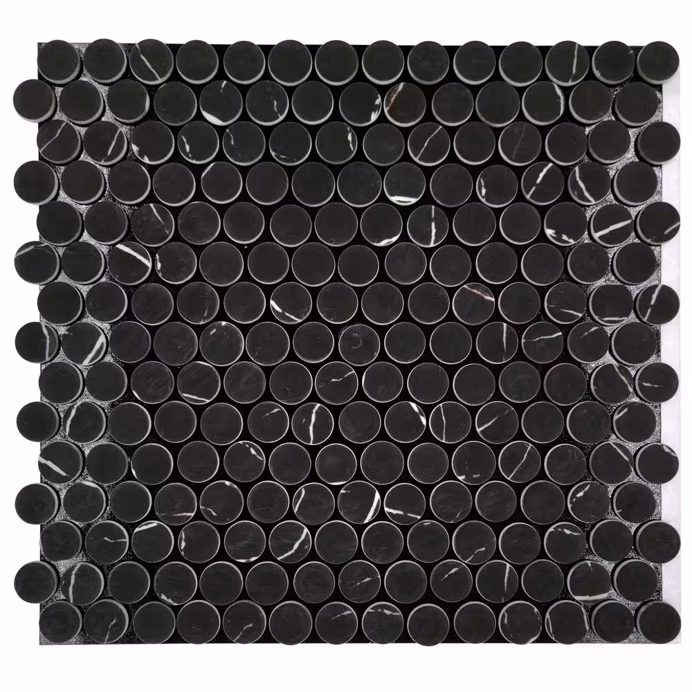 None Black Marquina Penny Round 11.1 in. x 10.4 in. Peel and Stick Backsplash Marble Looks Wall Tile (8.10 sq. ft./Case)