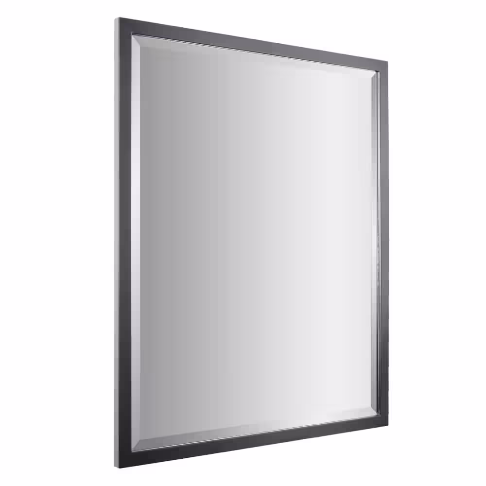 Deco Mirror 24 in. W x 30 in. H Metal Framed Beveled Edge Rectangular Vanity Mirror in Black