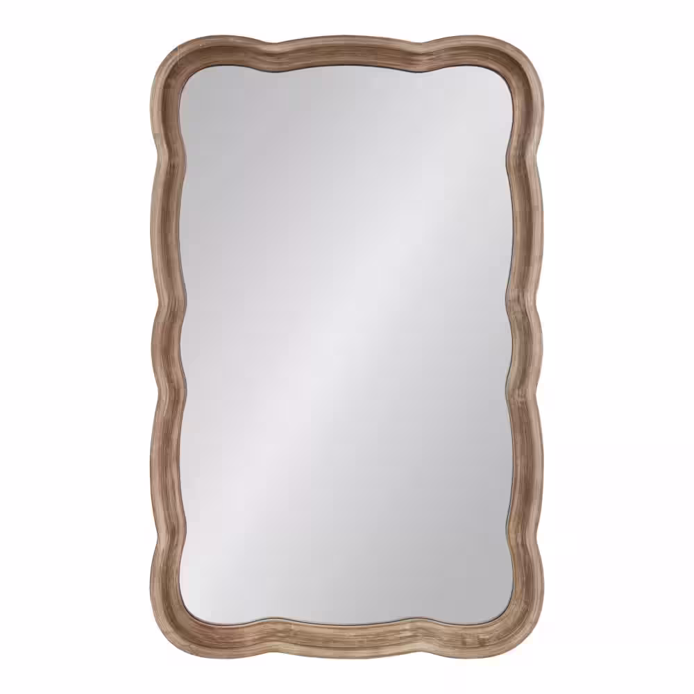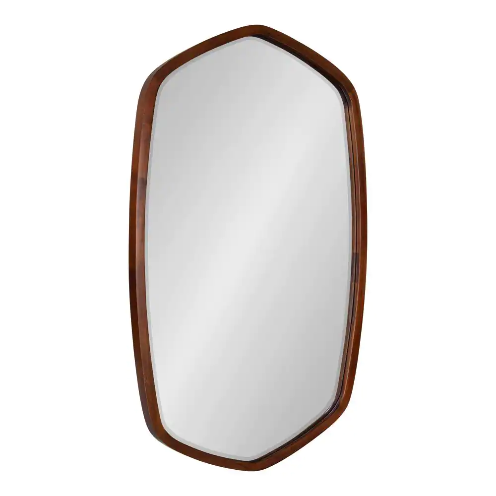 Kate and Laurel McLean 36 in. x 20 in. Classic Irregular Framed Walnut Brown Wall Mirror