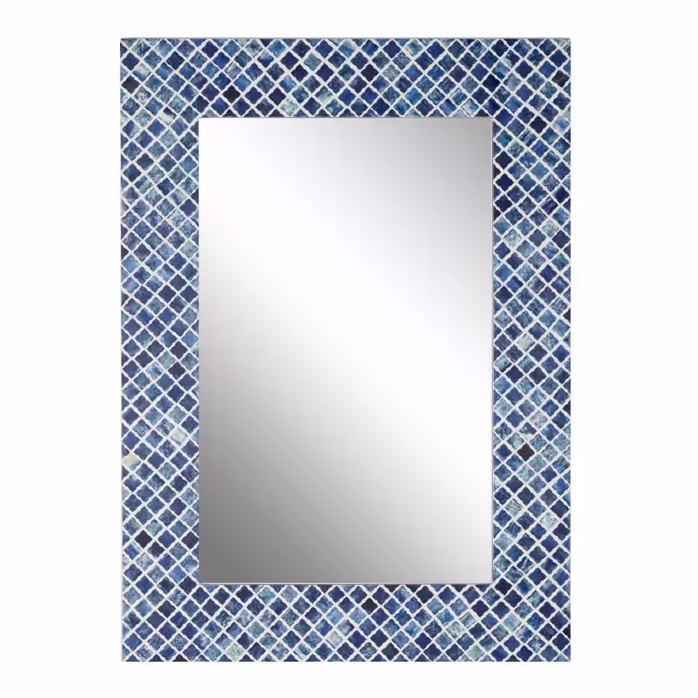 Litton Lane 36 in. x 26 in. Quatrefoil Rectangle Framed Blue Wall Mirror with Bone Inlay