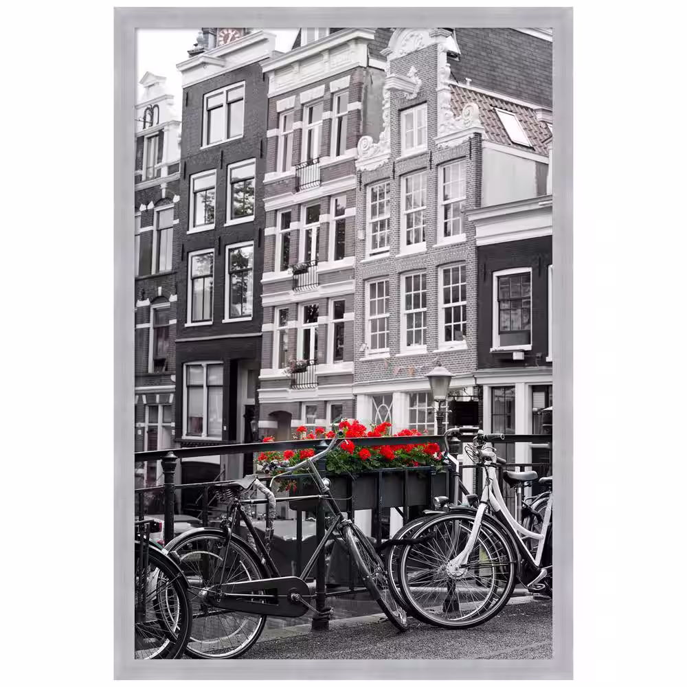 Amanti Art Grace Brushed Nickel Narrow Picture Frame Opening Size 24 x 36 in.